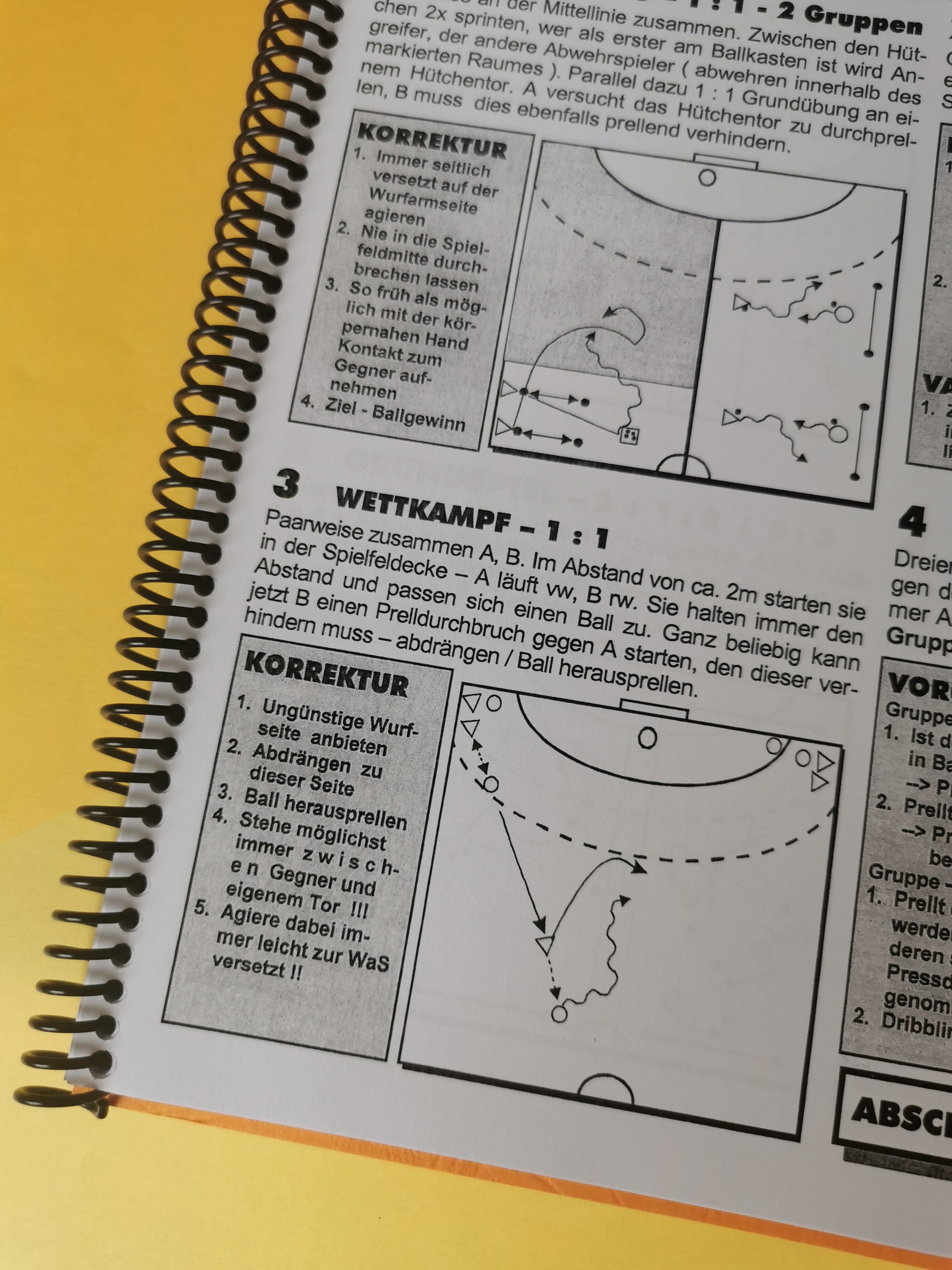 Pro Jugend werden in je 4 Büchern (6 Monate pro Buch) alle, für die jeweilige vom DHB vorgegebenen Inhalte, angeboten. Dabei werden einzelne Themenbereiche, wie z. B. Schlagwurf über das falsche Bein, Parallelstoß und Kreuzen nach methodisch-didaktischen Prinzipien, pro Buch über 6–8 Einheiten aufgebaut – diese werden im Verlauf dieser 6 Monate noch mindestens ein- bis zweimal pro Halbjahr, mit derselben Einheitenanzahl, in variierenden Übungen, wiederholt.