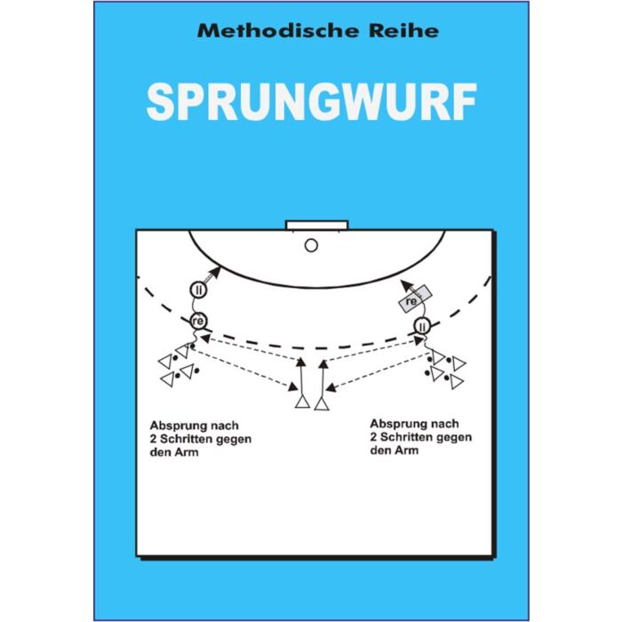 Die methodische Reihe zum Erwerb des Sprungwurfs wird in vier Lernschritte gegliedert. Sie beginnt mit einfachen motorischen Grundlagen wie Koordinationsübungen der Beine und Arme parallel dazu mit Hüpfern / Sprüngen über Reifen / Kastenoberteile und Bänke. Im Zusammenspiel dieser Basiselemente wird dann im zweiten Schritt der Sprungwurf aus dem 3-Schrittanlauf zur und gegen die Wurfarmseite erlernt. Im Variationsbereich als dritten Lernschritt wird die Schrittanzahl – Absprung nach zwei / einem Schritten angeboten.